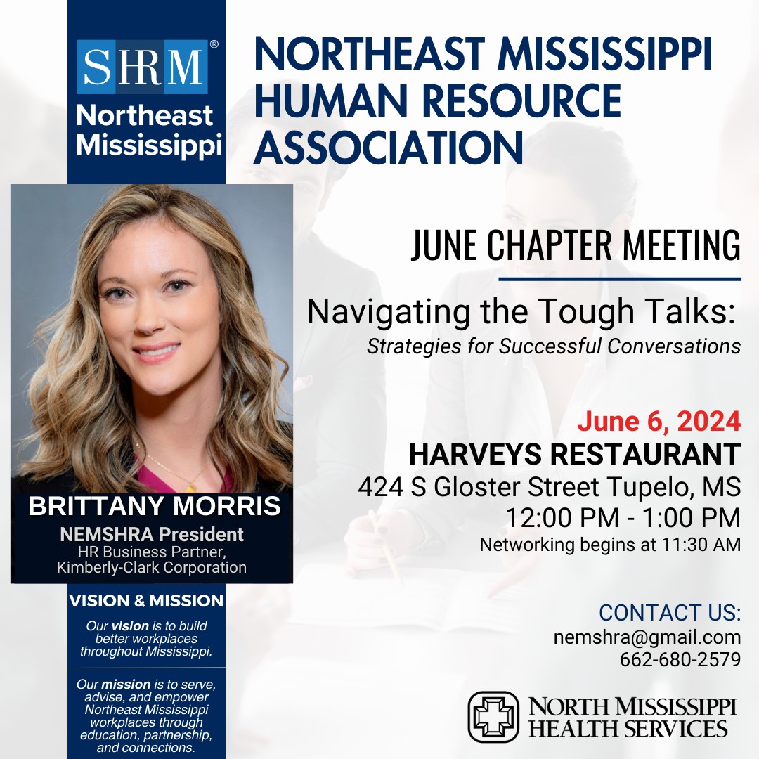 | Location: | Harveys Restaurant: 424 South Gloster St. Tupelo, MS. OPTIONS: Please arrive by 11:30a to get your food ordered and network! Lunch/Networking @ 11:30a Speaker/Meeting @ 12:00 – 1:00p NEMSHRA 196 is inviting you to a scheduled Zoom meeting. Join Zoom Meeting - register here https://us02web.zoom.us/meeting/register/tZUqfumuqjsjEtP4ATdIUZGvpp4VspXHCTBN |